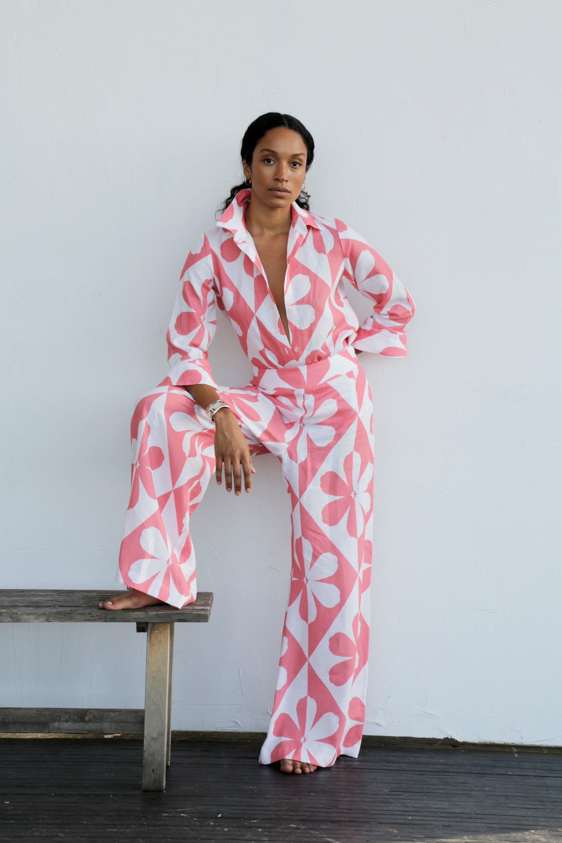 This flowy Palazzo Pant is cut in an eye-catching print. The waistband has a side zipper, creating a smooth front. The wide leg is easy to wear with flats or heels. Pair these pants back to the matching Geo Floral Classic Shirt for a set look or with white for a crisp look.