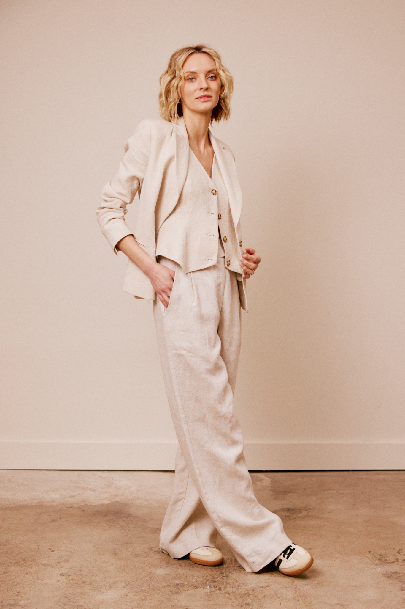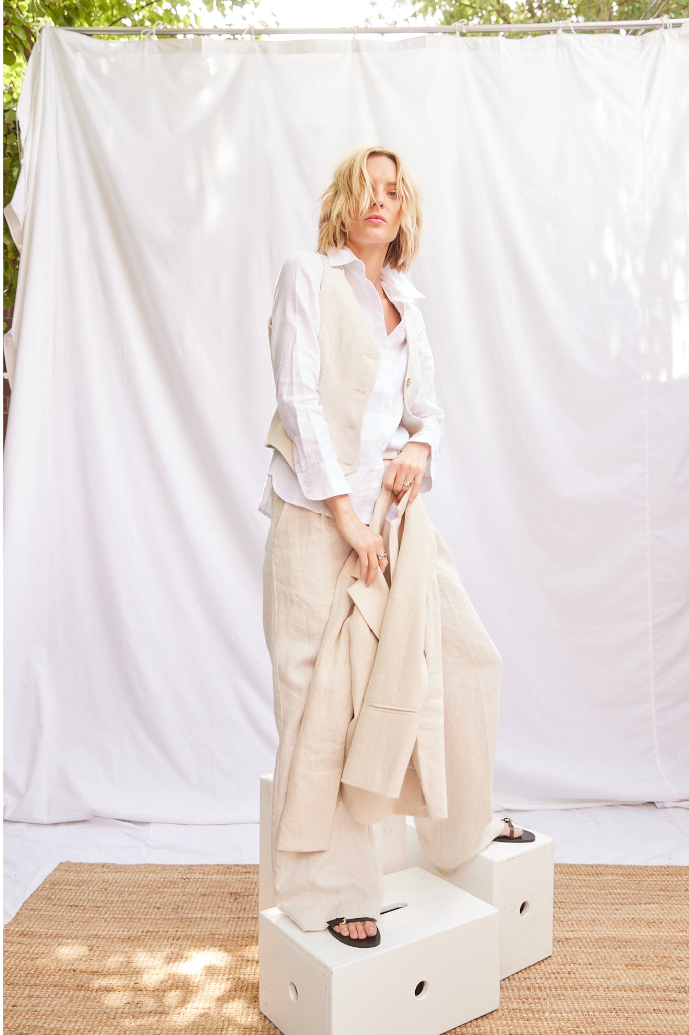 This vest is fitted with four functioning buttons. Great worn on it's own or layered with a shirt. Pair this vest back to our Portofino Pant.